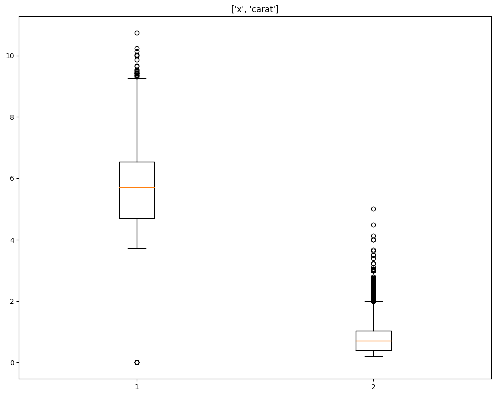 data_cleaner.outliers_single(column= ["x","carat"]) # you can customerise the code according to column names.