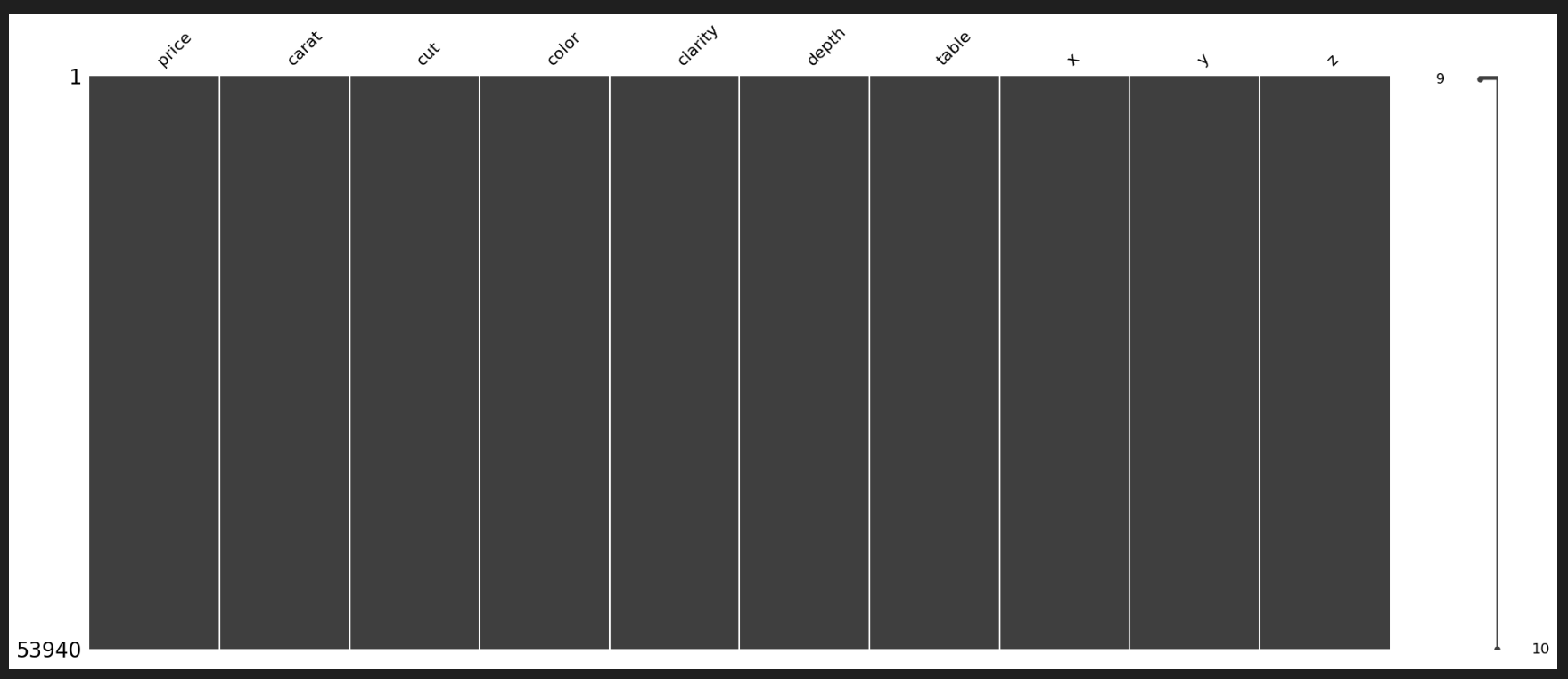 data_cleaner.missing_values()The output is a dataframe containing two columns, feature names and the number of NA values and a plot that indicates white spaces for missing values in the data.