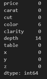 Additionally, we can also check missing values for a specific column (feature) for example if we want to check for the missing data points for price, we can use the code below