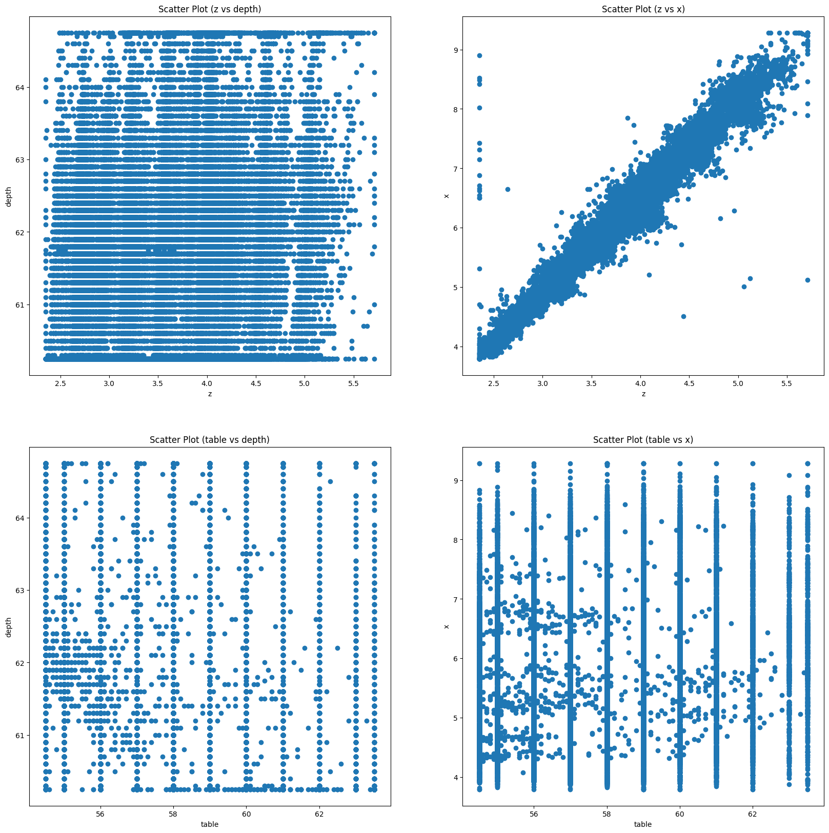 data_cleaner.lineplot(["cut",'color','clarity'],["price","x", 'table'])